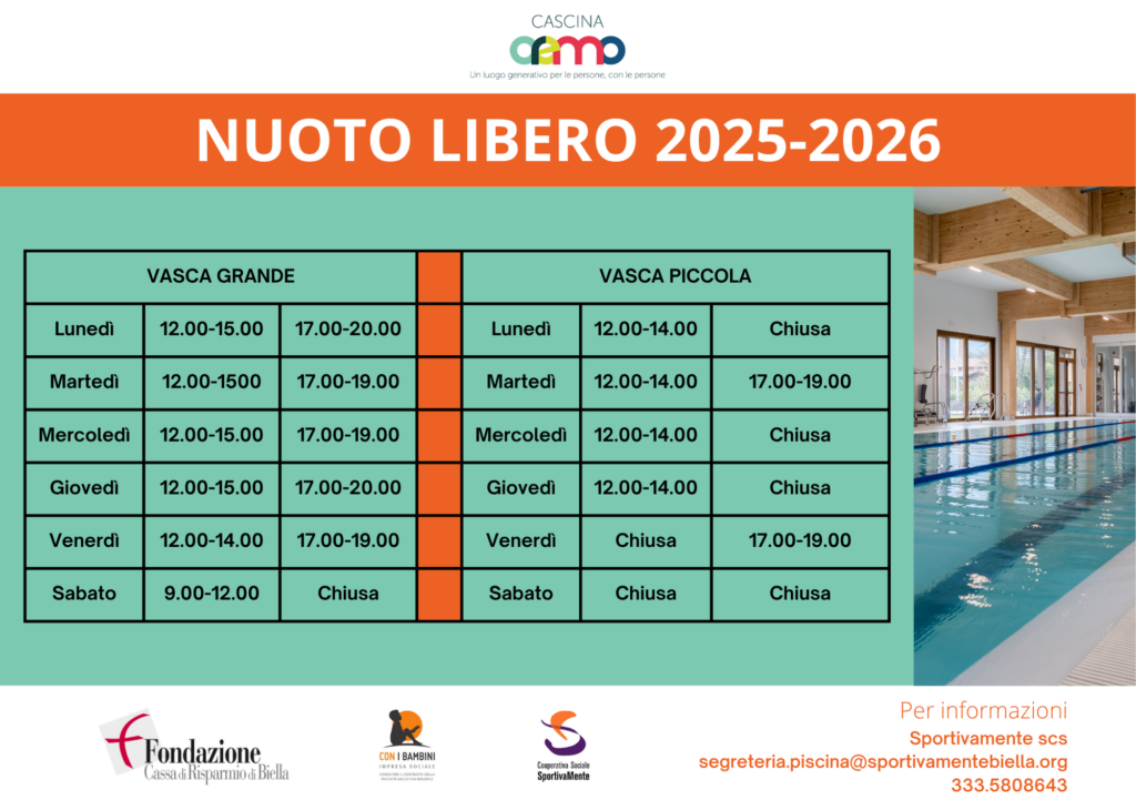 ATTENZIONE dal 01/09/2025 la piscina seguirà il seguente orario: