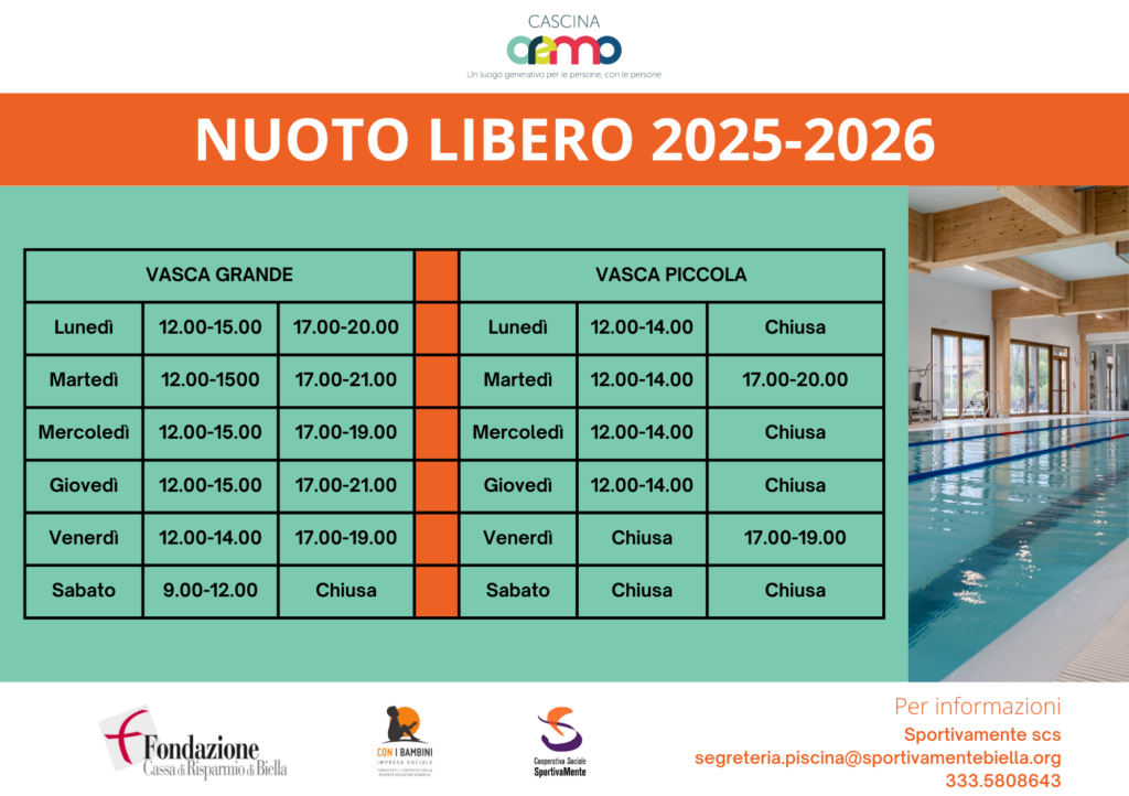 ATTENZIONE la piscina segue il seguente orario: