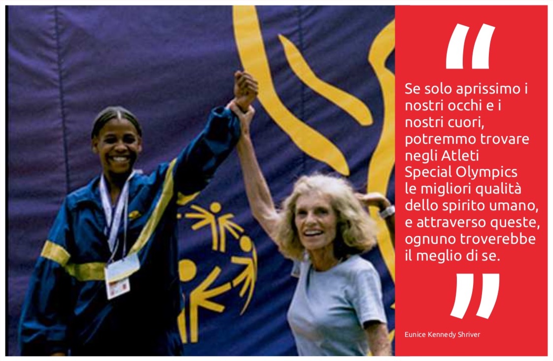 Eunice Kennedy Shriver ha avuto una splendida intuizione. Ha capito, lei per prima, che lo sport poteva essere il terreno comune per unire persone diverse, ognuna con le sue caratteristiche.