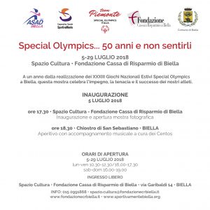 Grazie al prezioso contributo della Fondazione Cassa di Risparmio di Biella, Special Olympics Team Piemonte, A.S.A.D. Biella e la cooperativa sociale Sportivamente hanno organizzato questo tributo ai 50 anni di Special Olympics nel mondo.